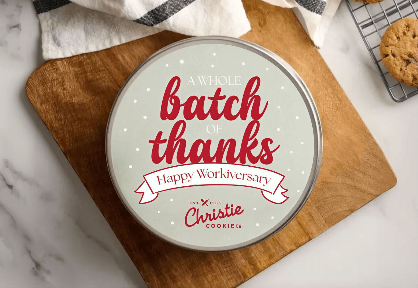 Flowers fade. Cookies get shared. Send a custom tin with a note that says it perfectly. Happy birthday, thank you, congrats, or just thinking of you.